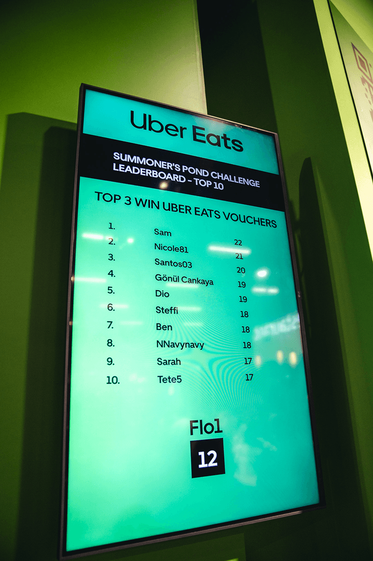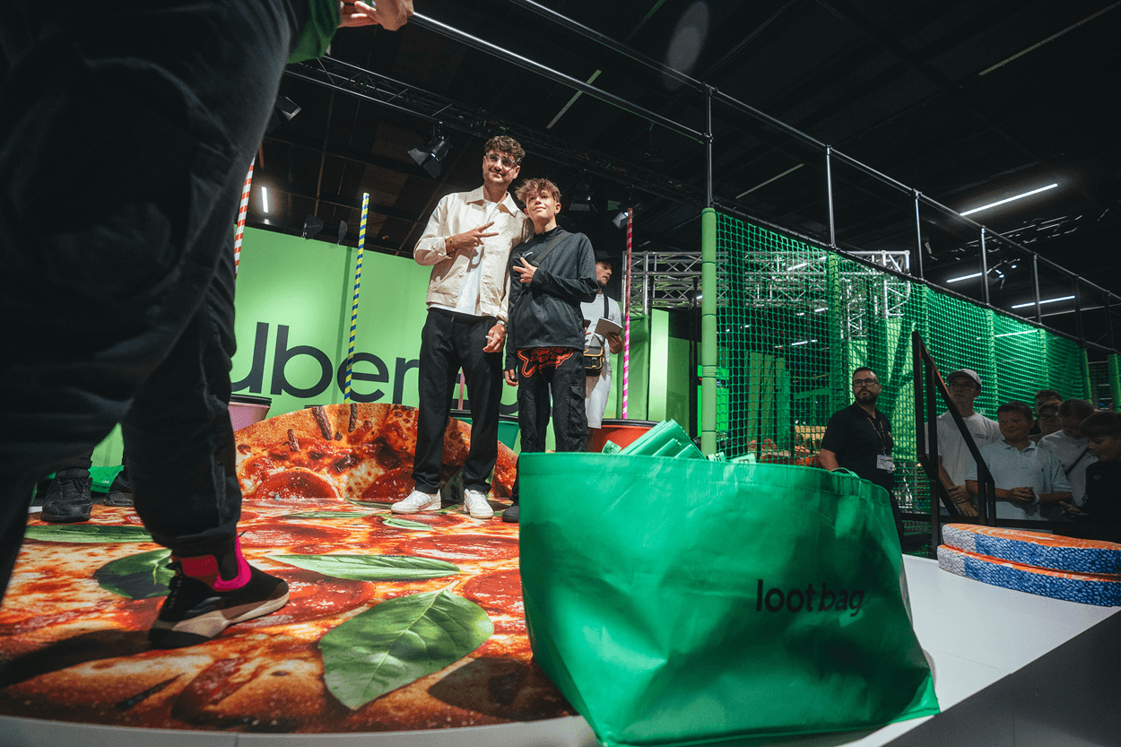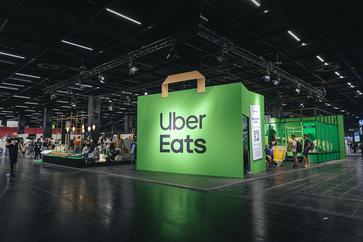 For Uber Eats’ first gamescom, we built a 270 sqm playground of food and gaming. Jump’n’Run parcours, the Summoner’s Pond, EA FC stations, raffles, and creator takeovers turned the booth into one of the event’s hotspots, and a physical extension of what Uber Eats stands for in gaming.